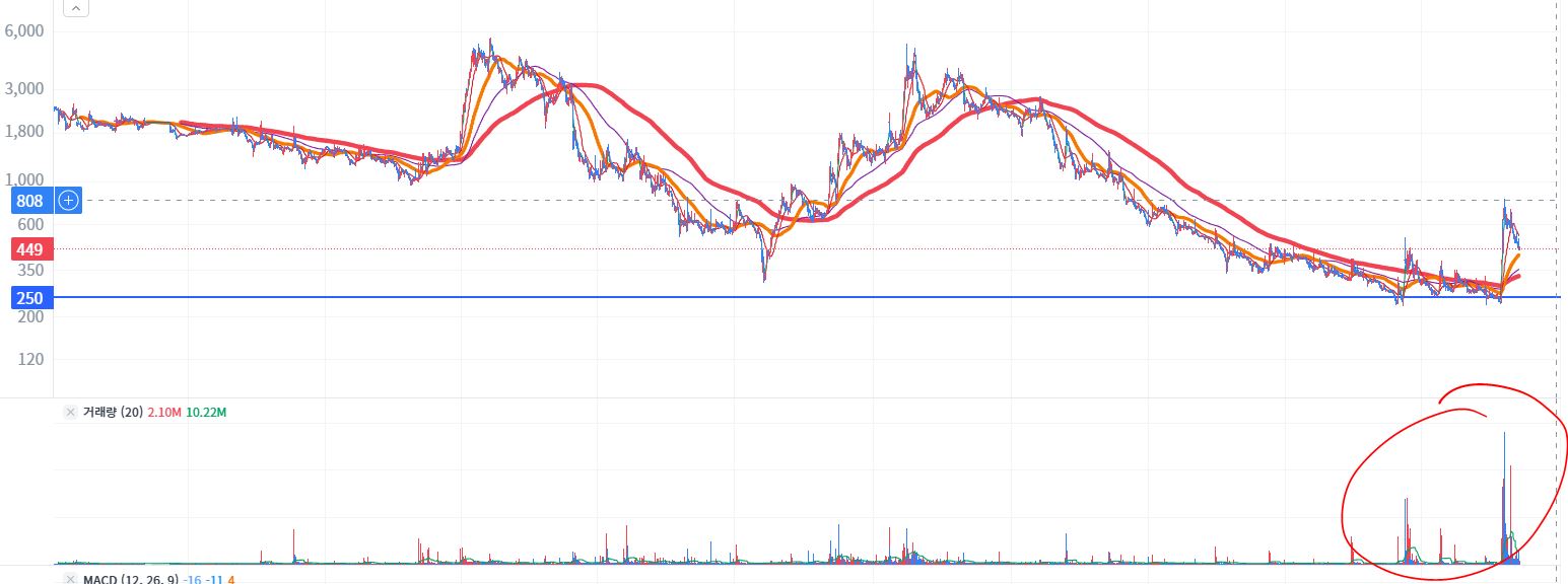 거래량을 터뜨리면서 밑에 구간에서 매집하는 것이 아닐까?