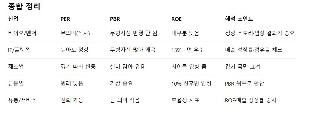 정리: PER, PBR은 참고만 하고, 매출 성장률, 시장 점유율을 더 중시해야 합니다.